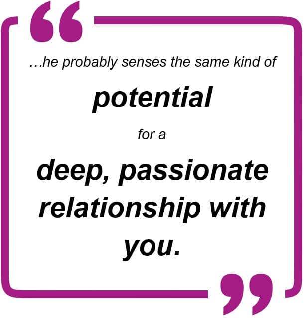 But most importantly, he probably senses the same kind of potential for a deep, passionate relationship with you.