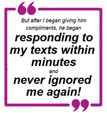 But after I began giving him compliments, he began responding to my texts within minutes and never ignored me again!