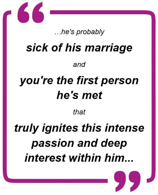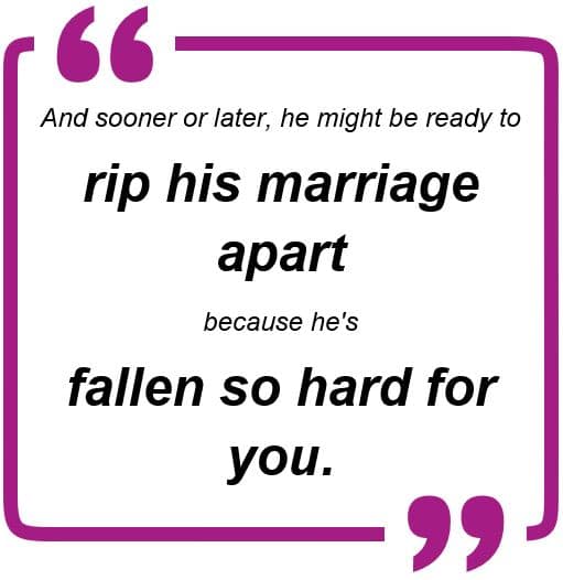 And sooner or later, he might be ready to rip his marriage apart because he’s fallen so hard for you.