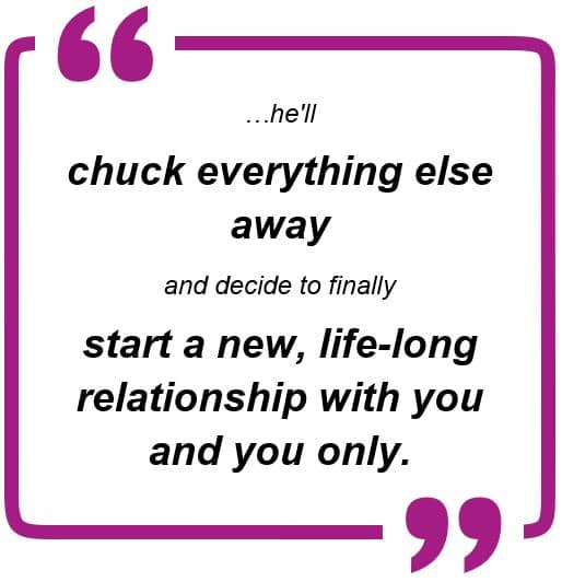Soon enough, he’ll start believing that you’re “the One”, and he’ll chuck everything else away and decide to finally start a new, life-long relationship with you and you only.