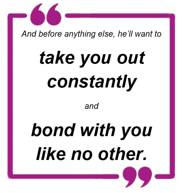 And before anything else, he’ll want to take you out constantly and bond with you like no other.