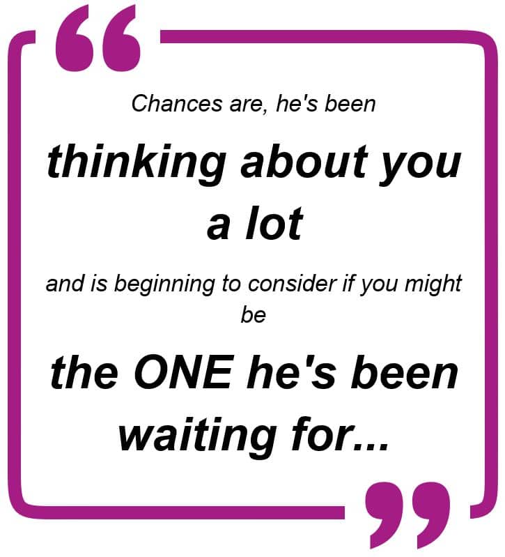 What’s more? Chances are, he’s been thinking about you a lot and is beginning to consider if you might be the ONE he’s been waiting for…