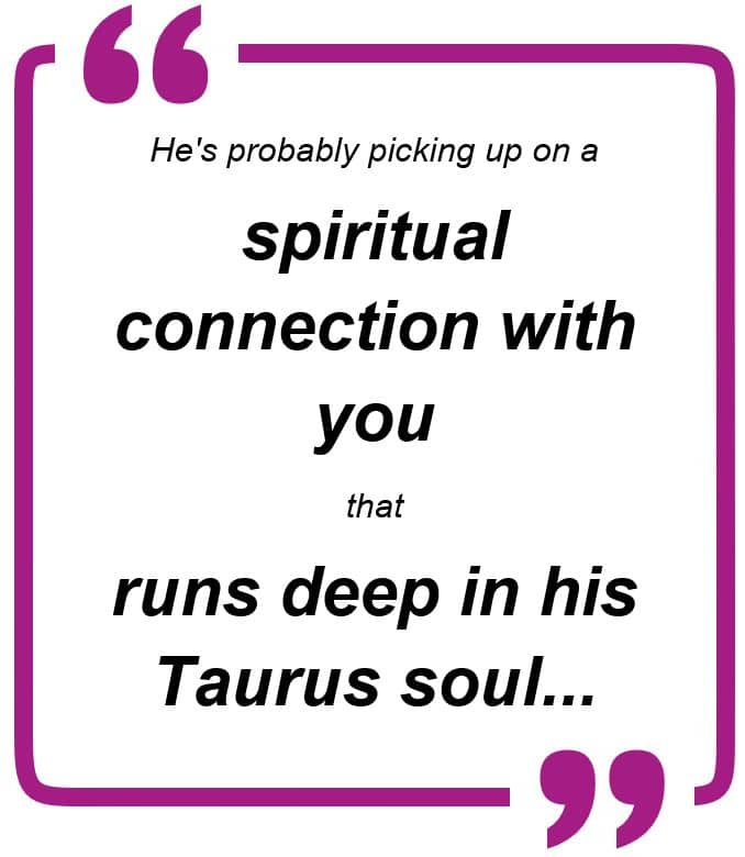He’s probably picking up on a spiritual connection with you that runs deep in his Taurus soul…