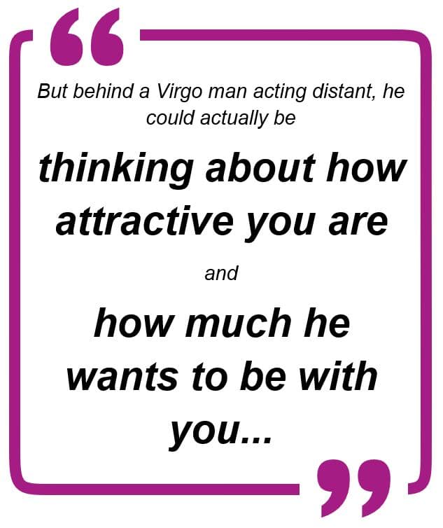 But behind a Virgo man acting distant, he could actually be thinking about how attractive you are and how much he wants to be with you…